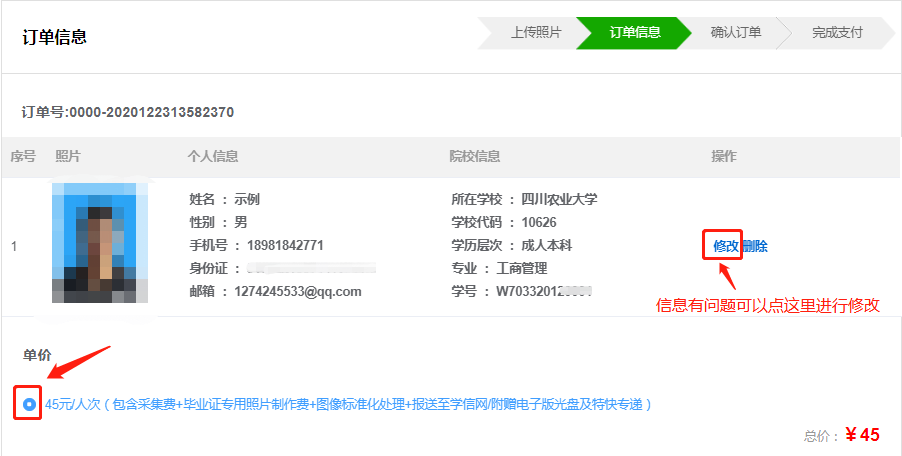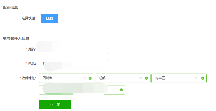 第三步:确认填写信息,并填写好邮寄地址,邮寄地址填写自己学习中心地址,填好后点击下一步;